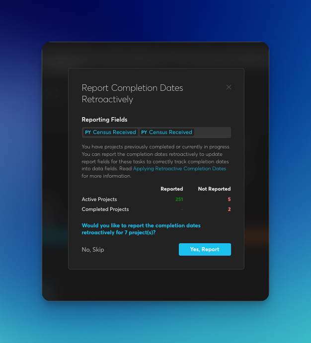 Retroactive Task Completion Logging Across Existing Work: We have expanded retroactive completion logging so task completion reporting can be applied more broadly using task-name matching, not only template-level mappings. This was done to improve historical consistency when reporting rules are updated after work is already in progress. Learn More